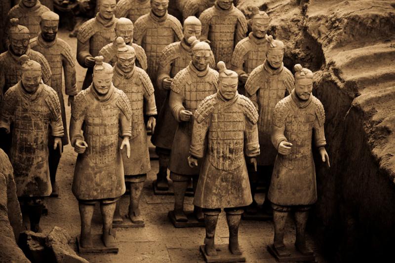Сиань знаменит на весть мир уникальным творением - Терракотовой армией императора Цинь-Шихуанди шагнувшей через века. Правителя донимали мысли, как обеспечить свое бессмертие. Но если прежде существовал обычай сопровождать захоронение массовыми убийствами подданных, советники убедили императора реализовать свои амбиции иначе. Созрел замысел охраны гробницы терракотовой армией.